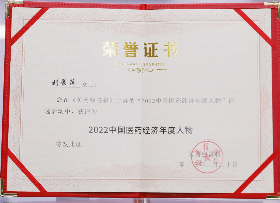 六合联盟药业集团董事长刘景萍当选“2022中国医药经济年度人物”