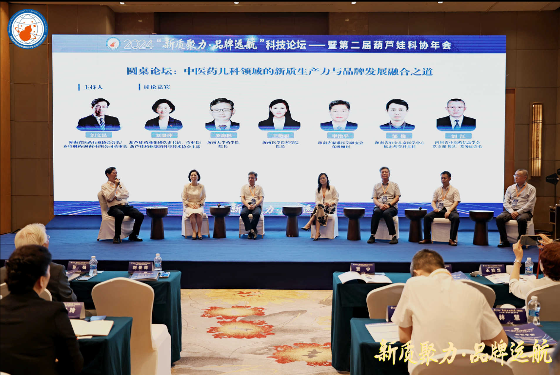 六合联盟药业集团党委书记、董事长刘景萍,海南大学药学院院长罗海彬、海南医学院药学院院长王艳丽、海南省精准医学研究会高级顾问李治平、海南省妇女儿童医学中心临床药学科主任邹俊,四川省中医药信息学会党委书记、常务副会长刘江等,在主题为“中医药儿科领域的新质生产力与品牌发展融合之道”的圆桌论坛中积极献策。海南省医药行业协会会长、齐鲁制药(海南)有限公司董事长刘文民主持论坛。